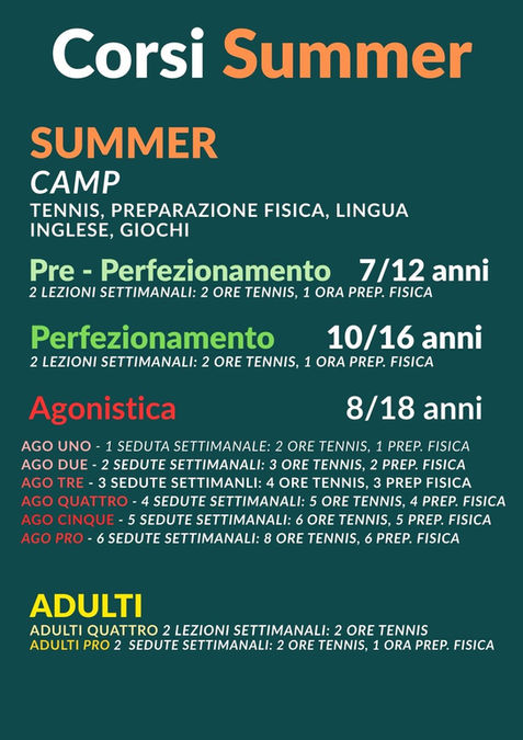 È il momento di seguire la tua passione, in un luogo in cui sport e benessere si respirano nell'aria. La nostra Scuola di tennis ha tutto quello che cerchi, da insegnanti esperti a dotazioni di qualità superiore. L'unica cosa che manca sei tu. Noi pensiamo a tutto il resto.